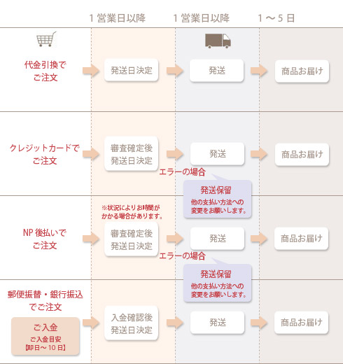 またイベント期間などご注文が混み合った場合、入金確認にお日にちをいただくためご希望日にお届け出来ない場合がございます。